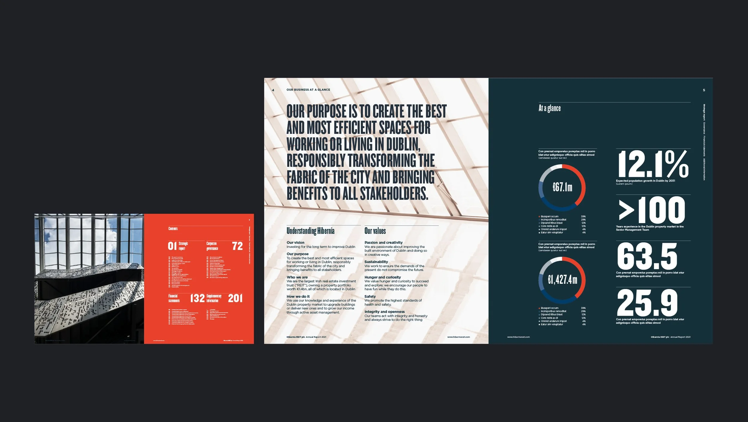 Working with the team at Luminous, I designed this concept for the 2022 annual report to push the brand forward. Using bold colours, statement typography and macro photography to focus on the details that make Hibernia REIT who they are.