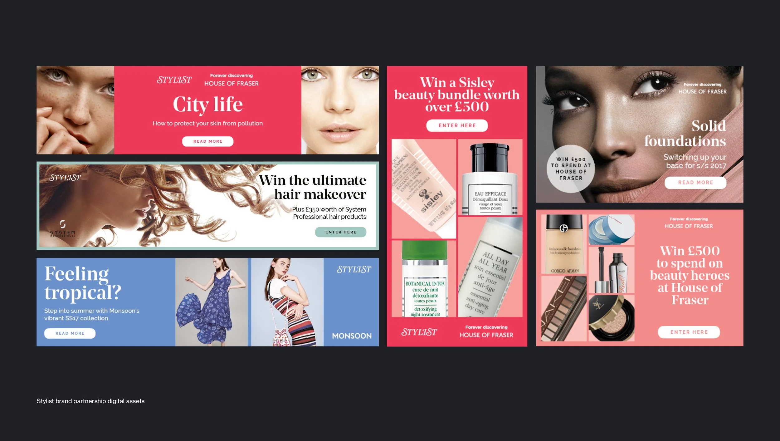 Campaign and advertorial design for paid partnerships with Stylist and Shortlist magazines.