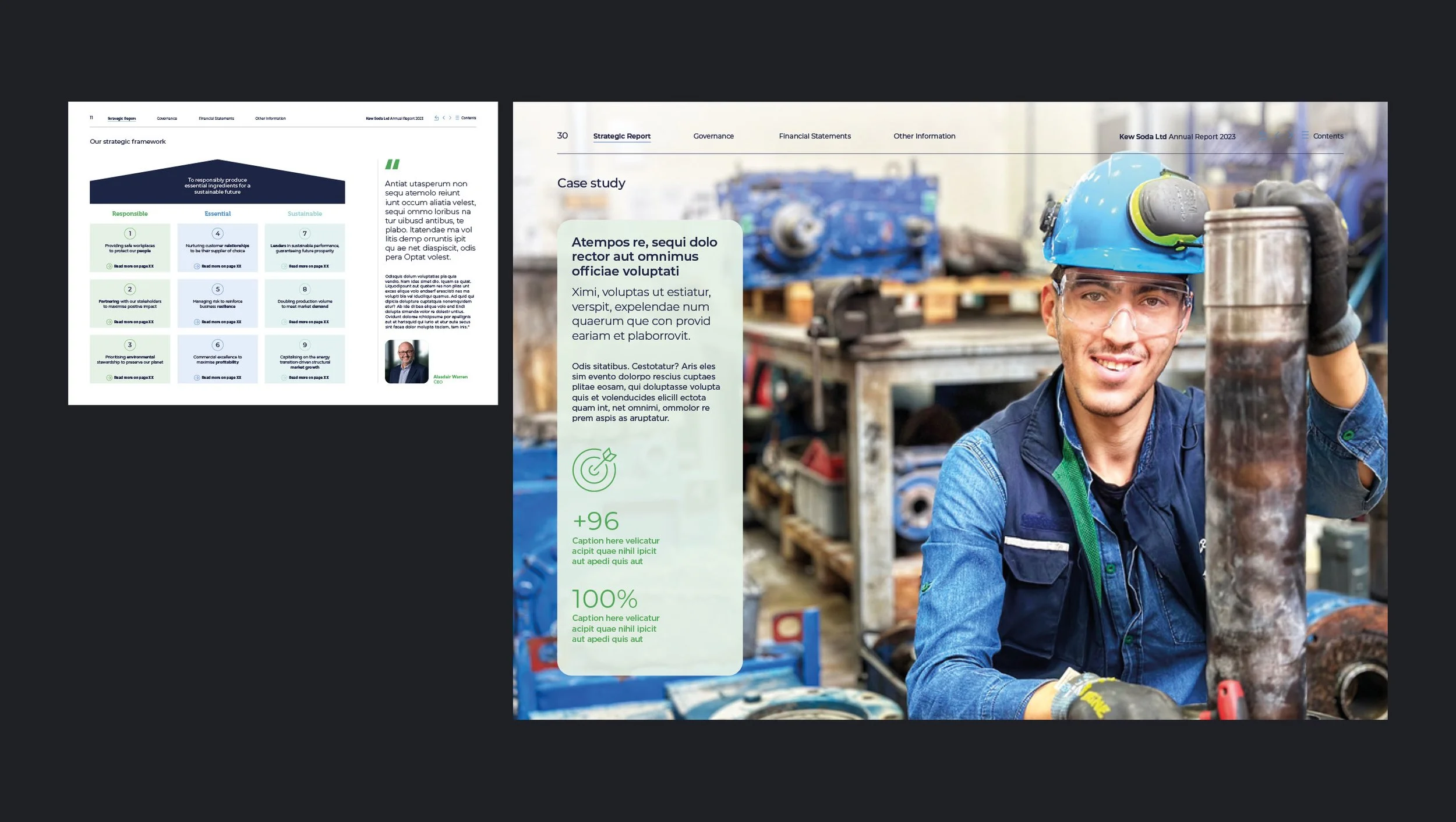 Having worked on the 2022 annual report with the Emperor team, I was tasked with evolving the design and concepts for the 2023 report. I created a dashboard that drives to an upfront section that clearly explains the key points of their strategic framework, whilst focusing on the people involved — from staff to customers and end users.